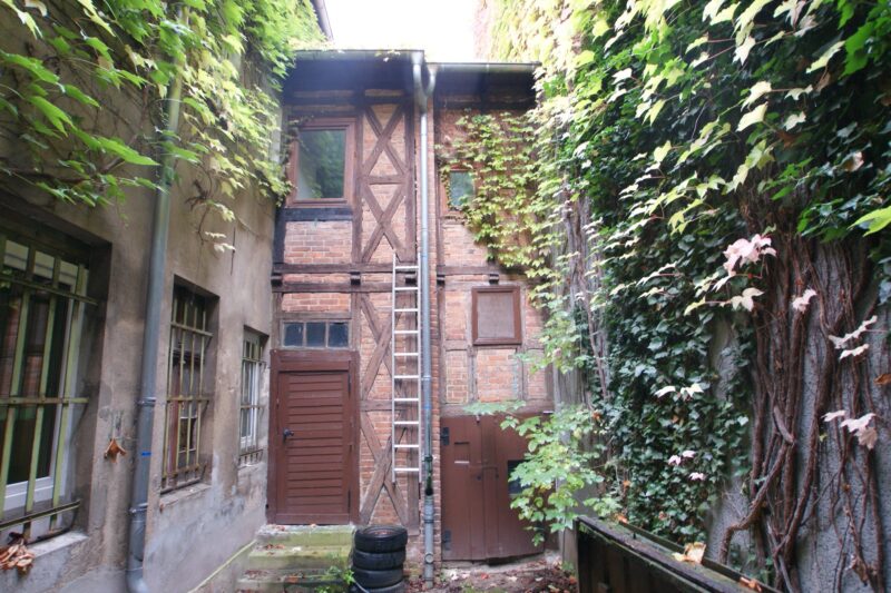 Auch gelangt man vom Treppenhaus aus in den kompakten Innenhof, hier gehört eine kleine in Fachwerkoptik errichtete Remise zur Immobilie, die im Erdgeschoss einen Abstellraum bietet. Im Obergeschoss ist das Badezimmer der oberen Wohnung untergebracht. Am gesamten Gebäudeensemble besteht Modernisierung- und Sanierungssbedarf sowohl aus technischer als auch energetischer Sicht – eine ideale Gelegenheit, mit Investitionen den Wert der Immobilie deutlich zu steigern.